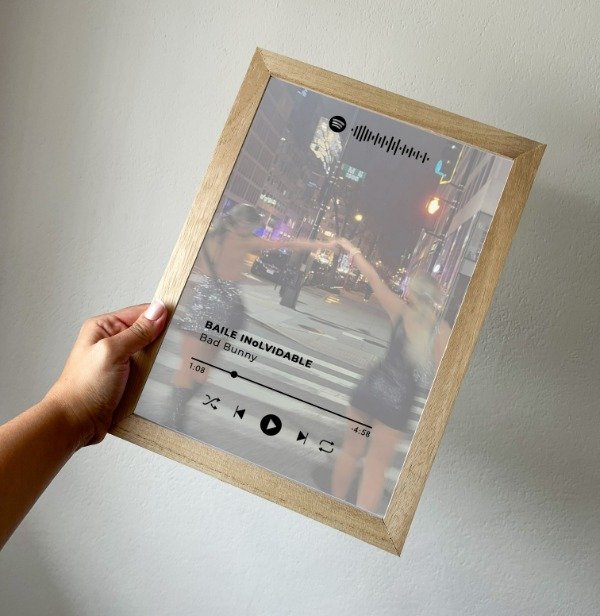 CUADERO DE MADERA CON VIDRIO, la foto puede estar en el fondo o mas chica en el medio, con la cancion que quieras